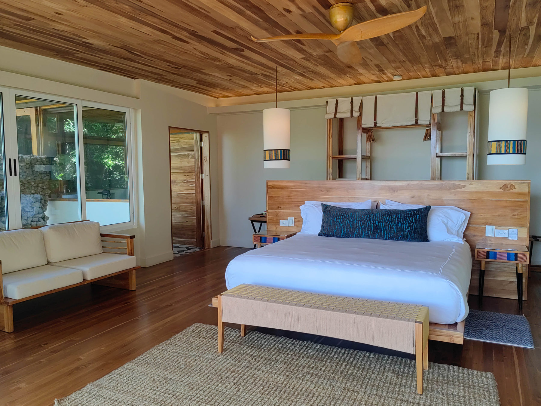 Por su parte, Lapa Ríos, en la Península de Osa, se encuentra en una reserva privada de selva tropical y promueve activamente la reforestación y la educación ambiental para sus huéspedes. Sus búngalos de madera, elevados sobre el terreno, se integran armoniosamente con el entorno, ofreciendo vistas panorámicas al océano y la jungla. Estos están diseñados con materiales sostenibles que maximizan la ventilación natural.