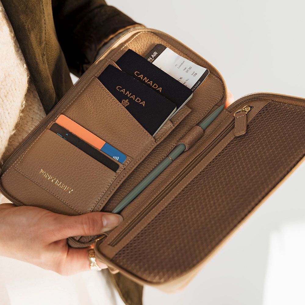 Empecemos con lo básico: una identificación. No importa a dónde viajes, el acceso por la seguridad del aeropuerto depende de esto. Según tu destino puede que también necesites visa y pasaporte. Hoy en día, marcas como Goyard y Prada ofrecen fundas que protegen tu pasaporte y le dan un toque de estilo y personalidad a tu travel bag.