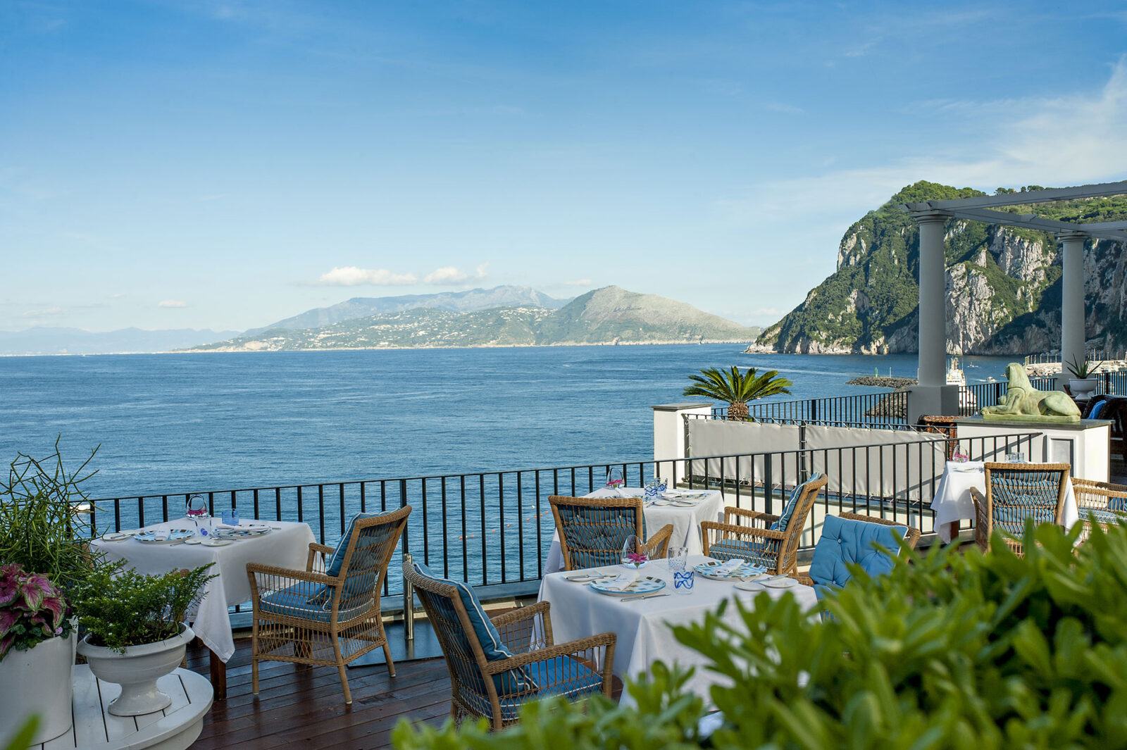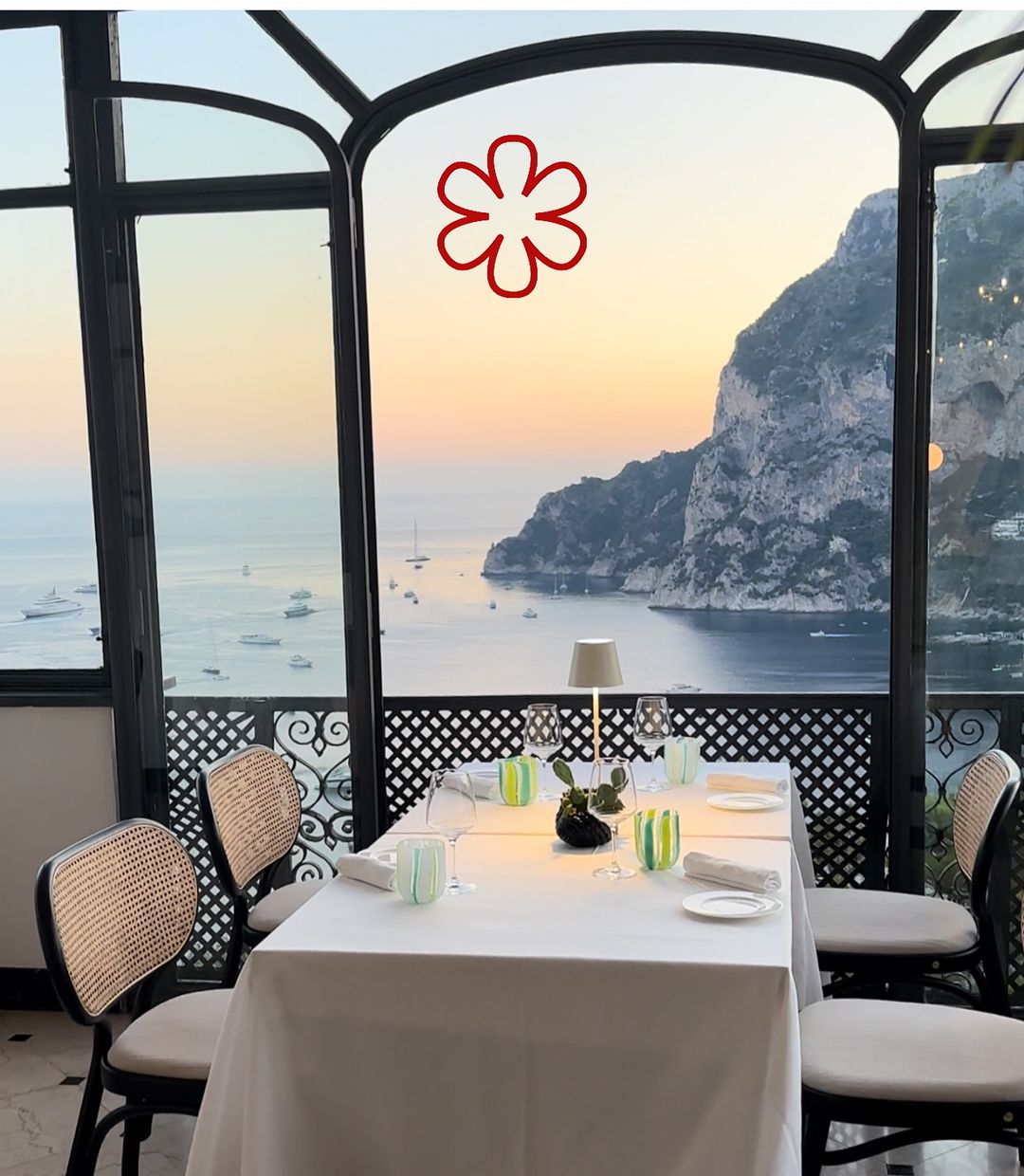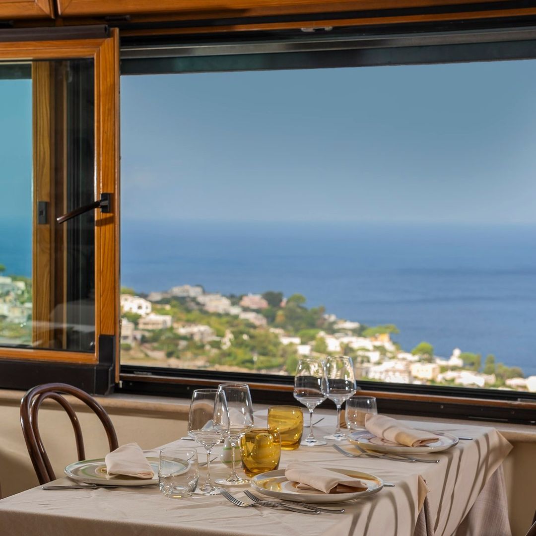 Ubicado en la pintoresca colina de la Piazzetta delle Noci, con vistas al mar, el chef Salvatore Aprea reinventa platos tradicionales de Capri con un toque contemporáneo.