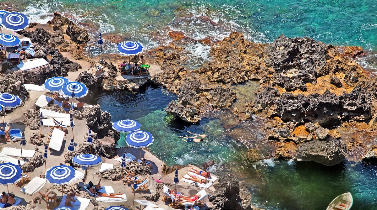 Capri no solo es famosa por su vibrante vida nocturna y deliciosa gastronomía, sino también por sus impresionantes clubs de playa.