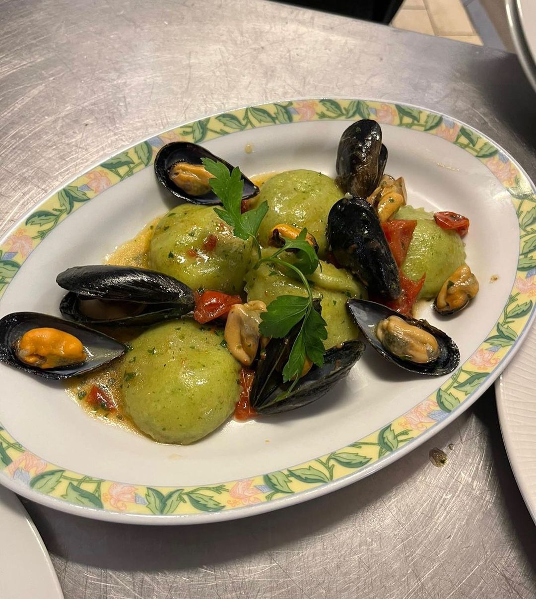 Terraza con vistas a la bahía de Nápoles, rodeada de un encantador limonar. Famoso por sus raviolis capresi preparados según la receta tradicional de la nonna.