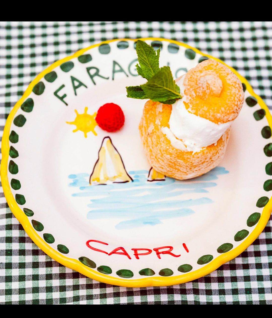 Un verdadero tesoro en Capri, inmerso en un encantador limonar. Famoso por su buffet de postres.