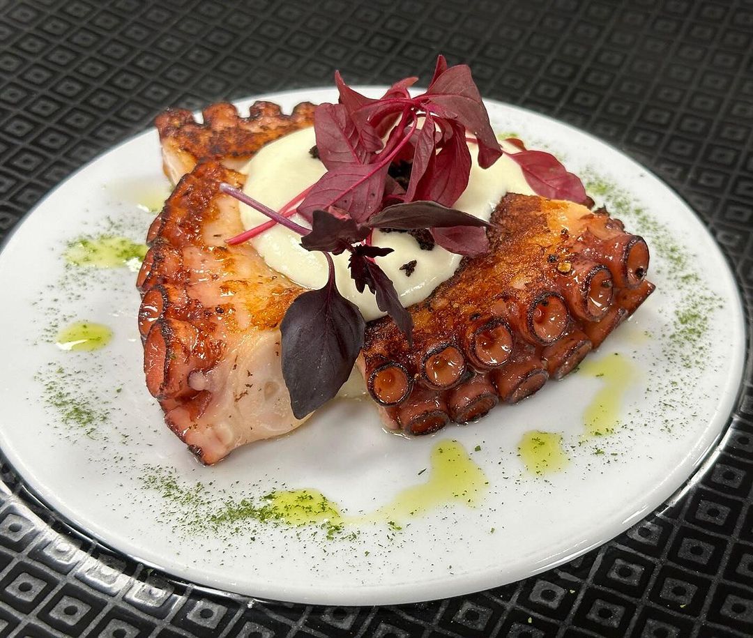 En Punta Tragara, restaurante con estrella Michelin, los platos destacados del chef Padano incluyen ragú de pulpo y pasta mista con langosta.