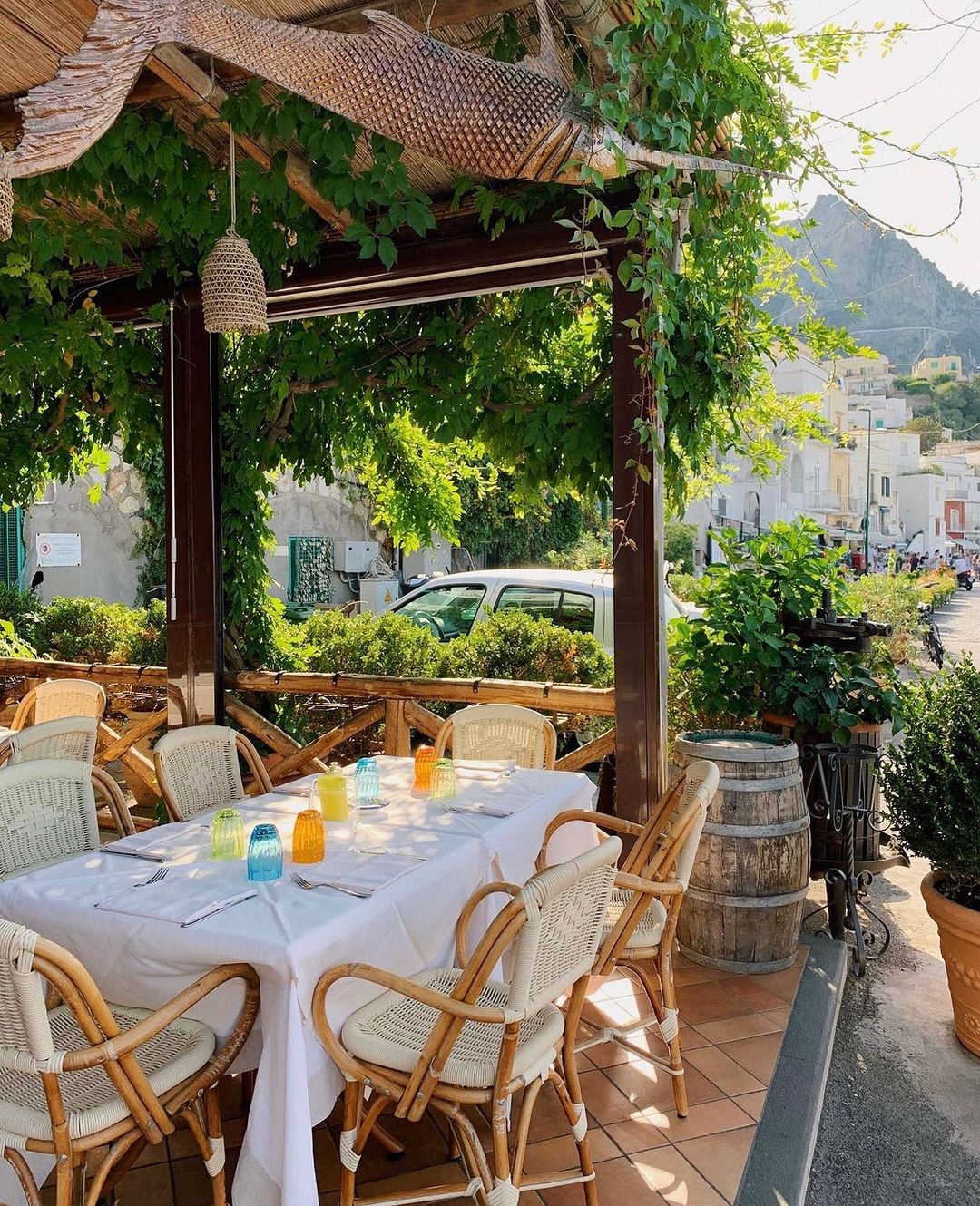 Ubicado donde se encontraba la villa de verano del emperador Tiberio. Famoso por su spaghetti alla Nerano con calabacín.