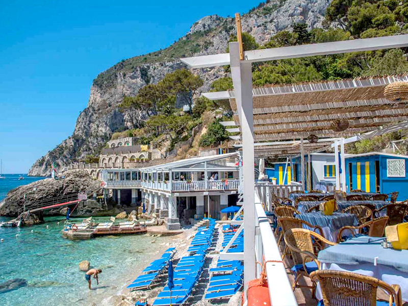 Uno de los clubs de playa más exclusivos del mundo, cerca de las rocas Faraglioni. Es famoso por su fabulosa cocina de pescado.