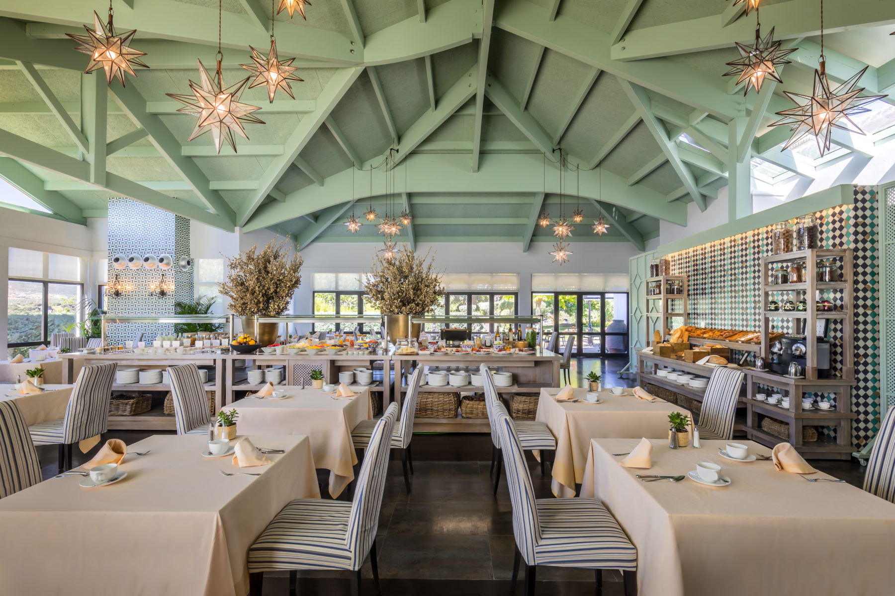 Sus 73 habitaciones y suites están diseñadas con un gusto que respeta el entorno. Techos con vigas de madera, suelos de barro cocido, textiles nobles y ventanales con vistas a los campos de olivos o a los cuidados jardines interiores. Todo está pensado para ofrecer un lujo silencioso, de esos que se sienten y no se presumen.