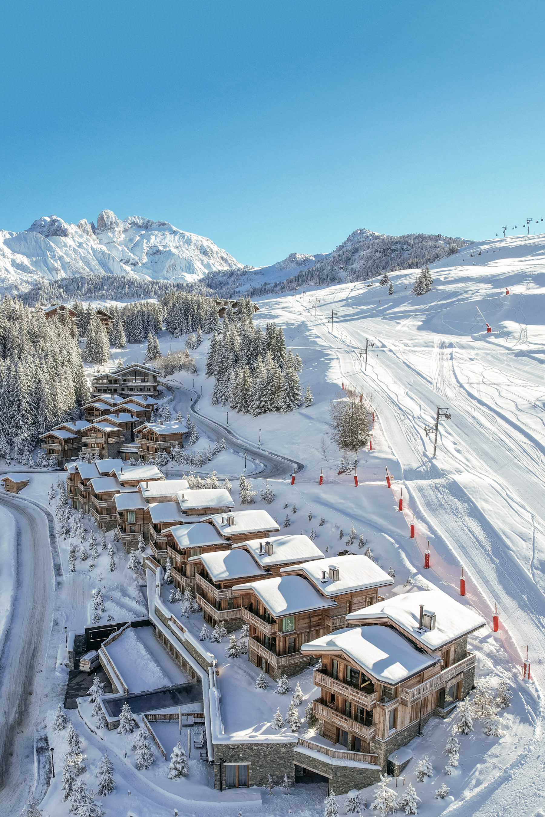 La travesía culmina en un enclave que personifica la cumbre de la innovación. Con una arquitectura vanguardista, este hotel ofrece una experiencia imperdible en materia de hospedaje invernal. Sus exclusivos chalets privados, que combinan madera y piedra, capturan la esencia de la sofisticación en la montaña.