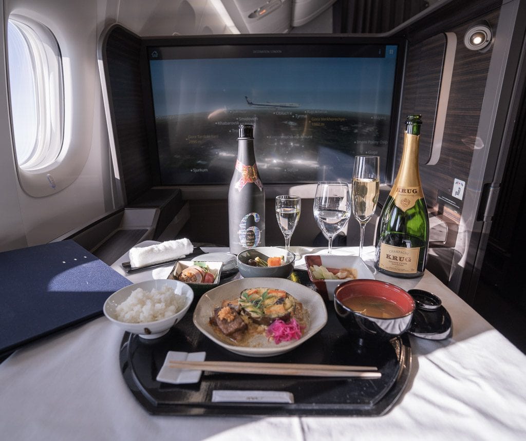 Si hay algo que distingue a ANA (All Nippon Airways) es su oferta gastronómica. En primera clase los pasajeros pueden disfrutar de menús diseñados por reconocidos chefs japoneses con platos como sushi fresco, wagyu a la parrilla y sake premium. Todo es servido en vajilla de porcelana y se acompaña con una selección de tés japoneses para cautivar todos los sentidos.