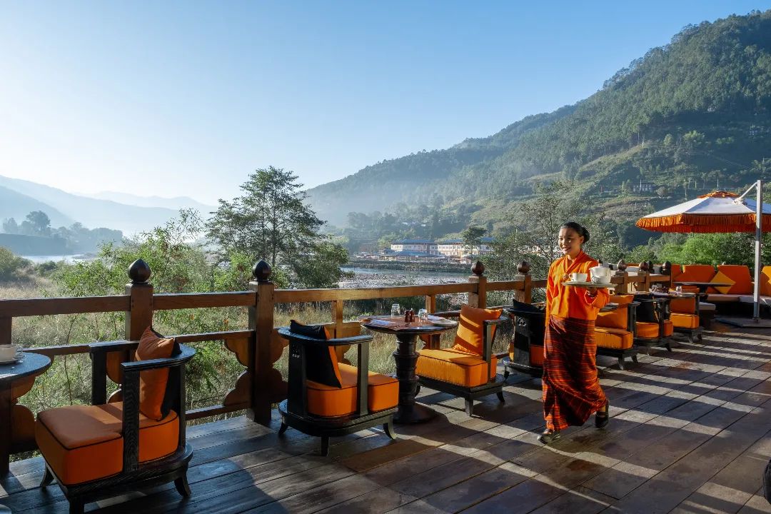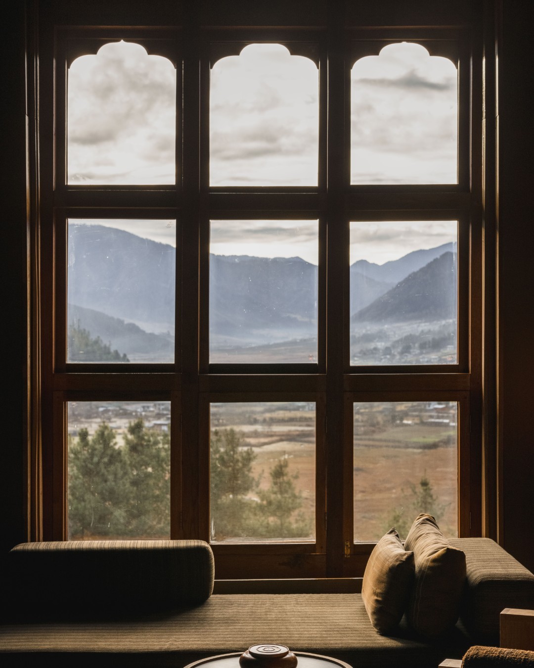 A orillas del río Mo Chu, se encuentra un espacio desde el cual podrás disfrutar de panoramas impresionantes de templos, picos nevados del Himalaya y terrazas de arroz. Una arquitectura que combina el diseño tradicional butanés con toques modernos y sus habitaciones con grandes ventanales y murales pintados a mano ofrecen escenas del valle dignas de recordar.