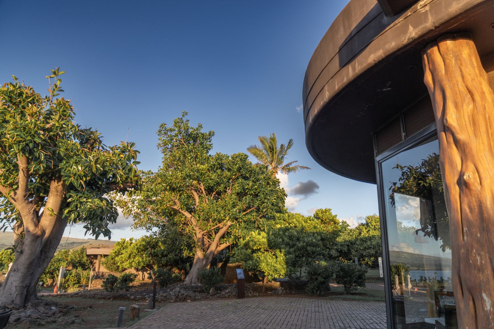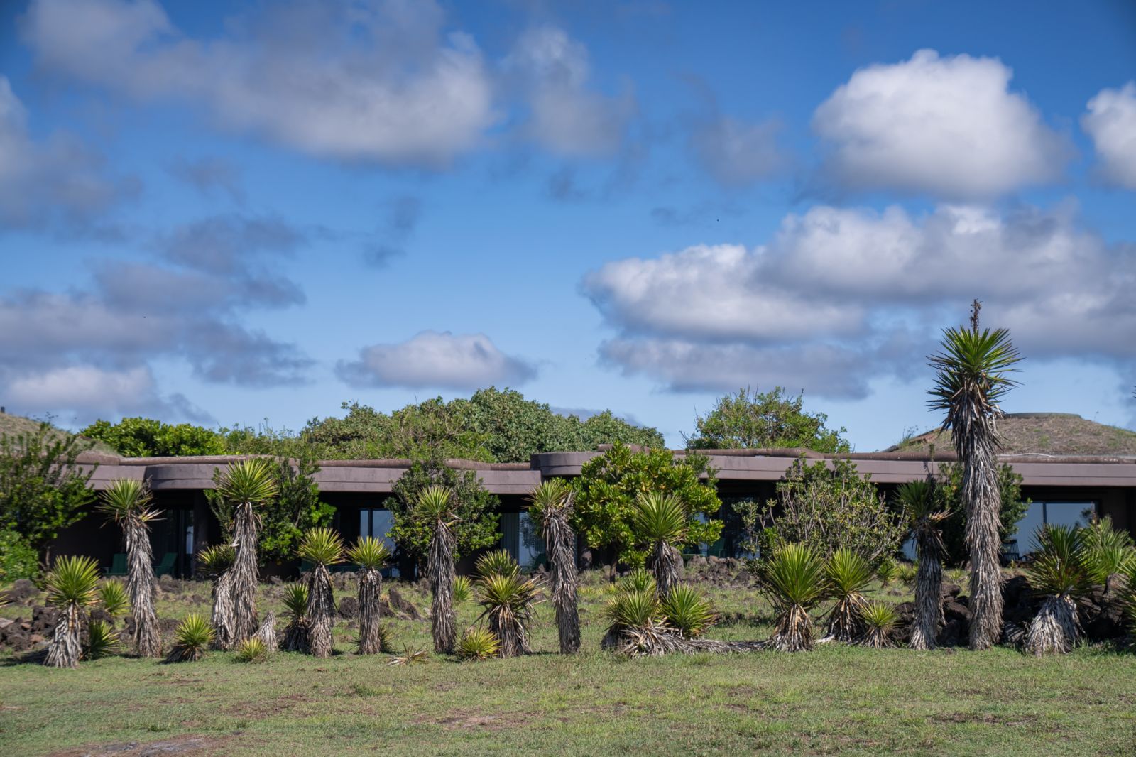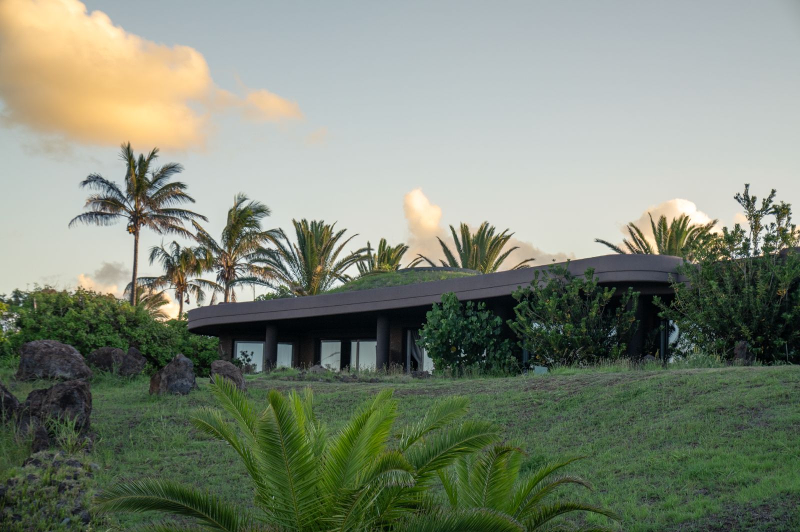 Inspirado en el antiguo centro ceremonial de Orongo, el diseño del hotel evoca las tradicionales casas bote de los antiguos habitantes de la isla. Estas antiguas viviendas reflejaban la ingeniosa adaptación de este pueblo a las condiciones de la isla. Con estructuras curvas, techos verdes cubiertos de pasto y el uso de materiales naturales, como la piedra volcánica y la arcilla, lograban proteger a sus habitantes del viento y la lluvia.