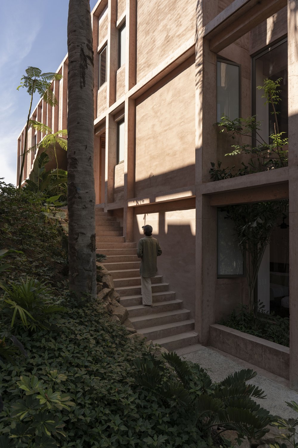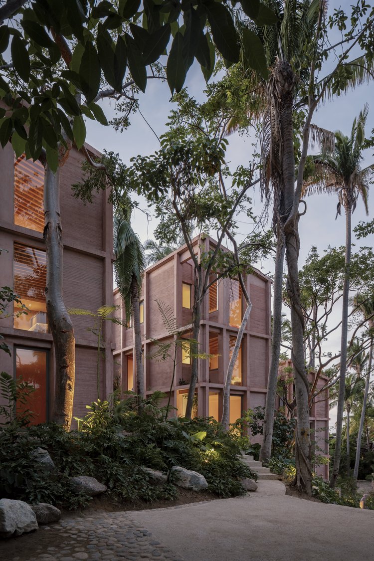 Para continuar con nuestra lista de refugios arquitectónicos, visitaremos la Riviera Nayarit. Ahí se encuentra Rosa Morada, un espacio diseñado por el arquitecto Manuel Cervantes, quien se inspiró en los elementos de construcción de los pueblos mexicanos para dar vida a esta obra. Con colores y texturas que armonizan con la vegetación y el entorno natural, las moradas presentan un equilibrio entre lo rústico y lo lujoso. Este espacio se destaca por su estética y diseño que resaltan la identidad mexicana. La arquitectura de Rosa Morada, con maderas cuidadosamente seleccionadas y detalles de construcción auténticos, logra una conexión profunda con el paisaje. Ofrece un escape que se convierte en una experiencia envolvente y respetuosa con el entorno.