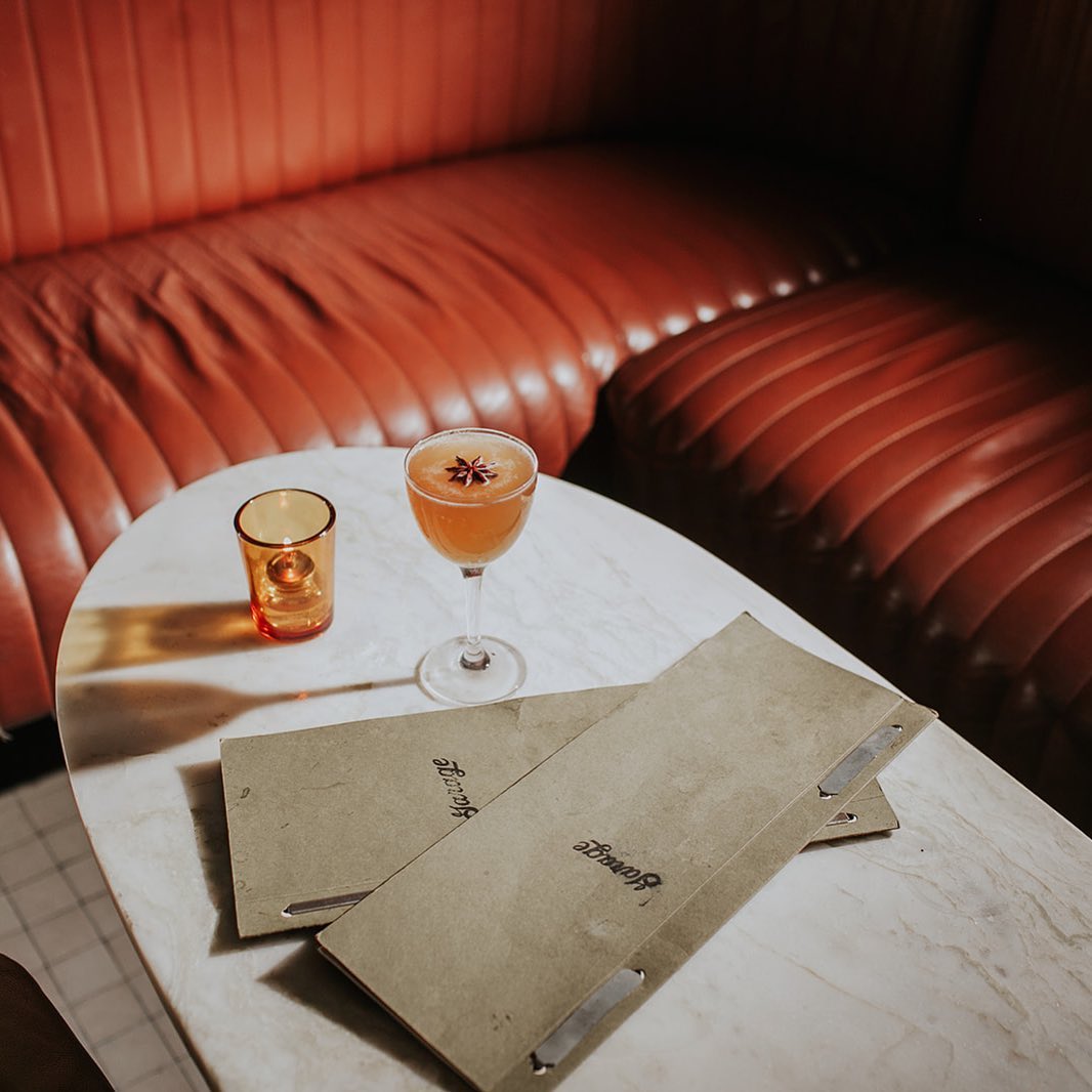 Escondido en el segundo piso de un estacionamiento, su discreta entrada a través de una puerta roja de metal conduce a un espacio alargado, donde te reciben sillones de terciopelo azul cielo y paredes revestidas con un papel tapiz setentero y cuadros retro, como un retrato de JFK y Jackie O’Neal. Esta atmósfera es perfecta para disfrutar de sus exquisitos cocteles. Te recomendamos el Maple Leaf, una combinación de bourbon, jugo de limón, jarabe de maple y un toque de canela.