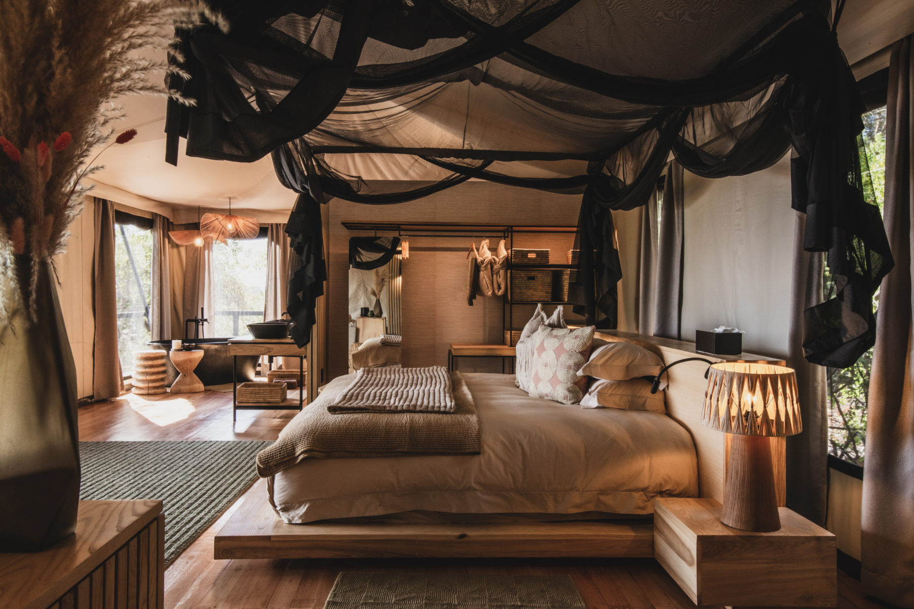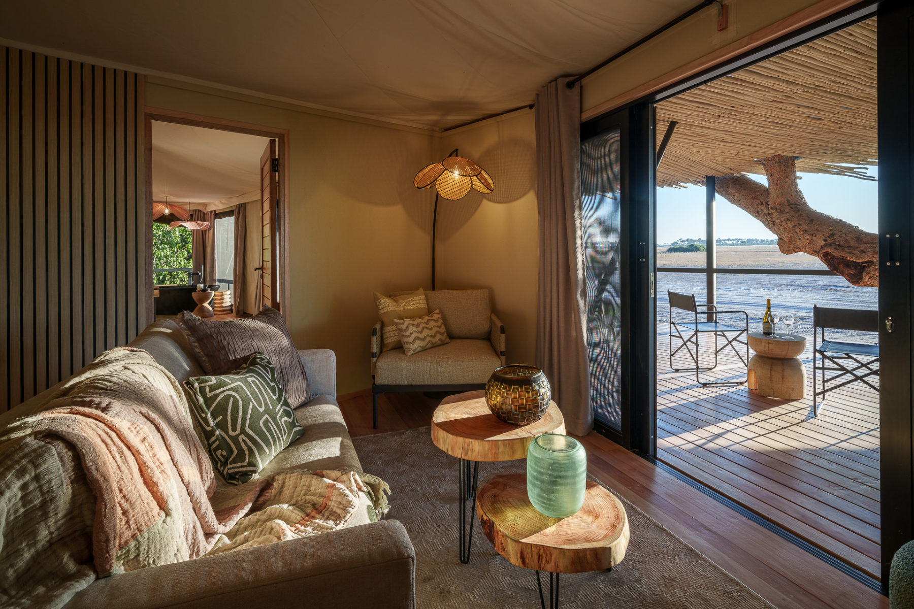 El diseño se extiende más allá de la estética, integrando elementos como puertas corredizas, paneles de malla y duchas al aire libre, que permiten a los huéspedes vivir el entorno sin renunciar a la comodidad. Este enfoque sostenible se alinea con la filosofía de Wilderness de conservación y apoyo comunitario: los materiales reutilizados del campamento se donaron al comité de desarrollo de Tubu Village.